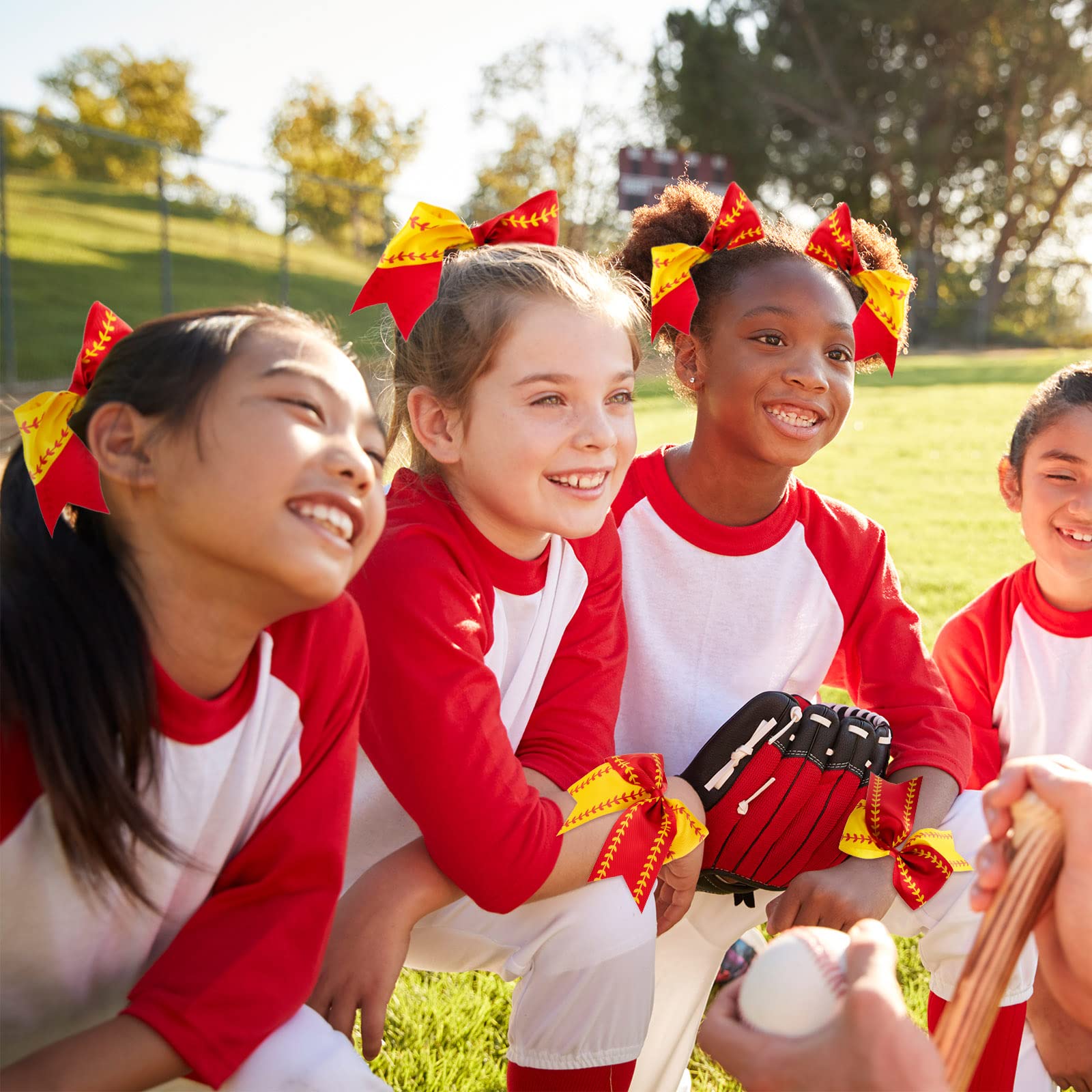 Amazon Com 16 Pcs Softball Hair Bows 6 5 Inch Softball Cheer Bows Elastic Softball Hair Accessories Baseball Hair Bow Softball Hair Ties Ponytail Holder Softball Headband For Girls Teen Cheerleading Red Yellow