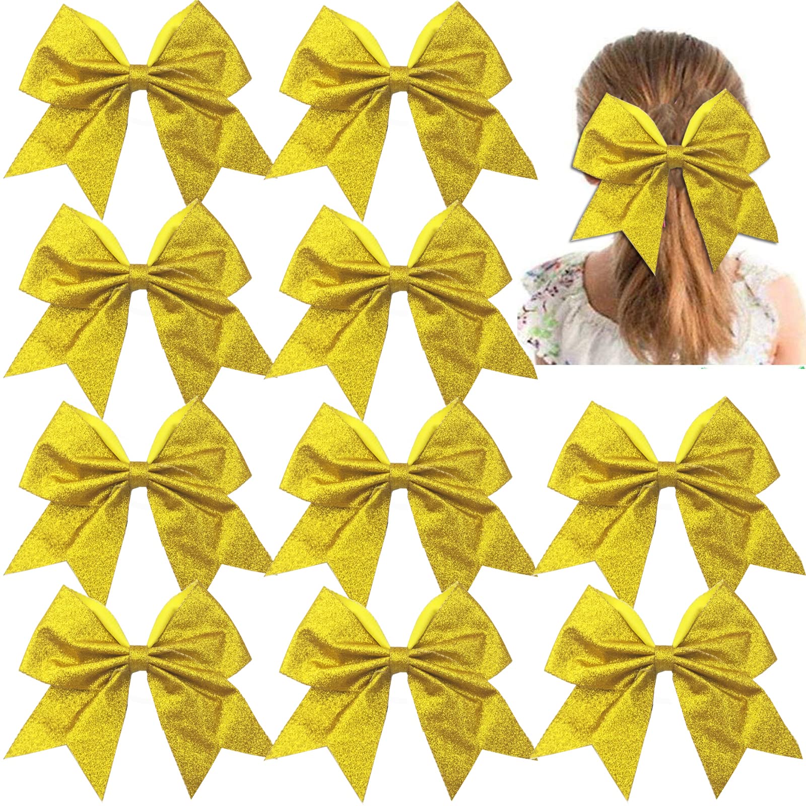 Amazon Com Hipcheer 10pcs 8 Large Gold Glitter Cheer Hair Bows For Girls Hand Made Grosgrain Ribbon Hair Accessories For Teen Girls Softball Cheerleader Sports Beauty Personal Care